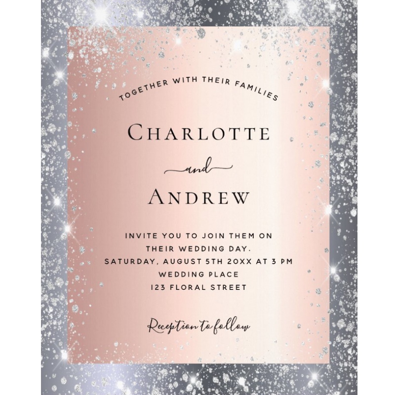 Blush and Silver Dust Effect Wedding Invitations