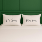 Mr and Mrs Pillow Case Set of 2 – Celebrate your love story with a custom wedding pillowcase made just for you. Featuring personalized names, dates, or initials, this piece adds a unique and sentimental touch to your ceremony or bedroom décor—turning a special moment into a lasting memory.