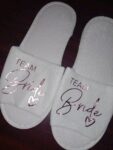 Wedding slippers with a variety of colour prints. Cute spa novelty slippers are adorable for the Bridal party.