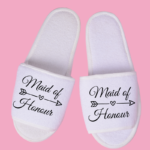 Wedding slippers with a variety of colour prints. Cute spa novelty slippers are adorable for the Bridal party.