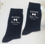Bow Tie Name Date and Title Wedding Socks – Fun printed socks, to add that extra touch on your wedding day. Our Printed Wedding socks are available with a variety of print options. These wedding socks make the perfect gift.