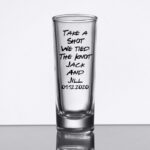 PLEASE NOTE: SHOT GLASSES do not have direct prints on them, we apply a vinyl sticker to the shot glass, for novelty and wedding favour purposes only. The glass sticker will only last if washed under cold water and not washed in a dish washer.